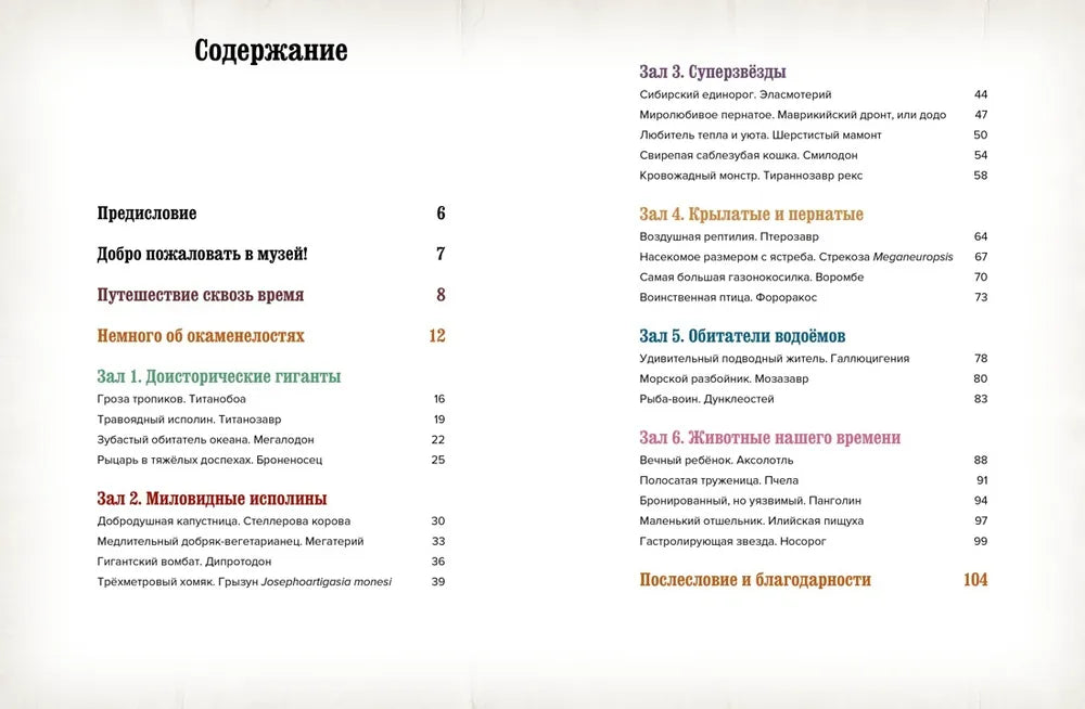 На страницах книги вы познакомитесь с животными, которых невозможно встретить в нашем мире сегодня. Огромные хищные рыбы, исполины-динозавры, необычные насекомые и громадные рептилии — все эти создания населяли планету в доисторические времена; сейчас о них напоминают лишь коллекции ископаемых. Память о вымерших животных очень важна — изучая их, можно не только узнать множество невероятных фактов о животном мире, но и проследить, как развивалась жизнь на Земле задолго до появления человека. Проходя по залам музея, вы также встретите илийскую пищуху, носорога, панголина и других редких животных, которые живут в одно время с нами, но находятся на грани вымирания и нуждаются в помощи людей.