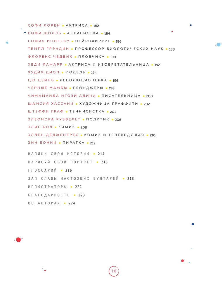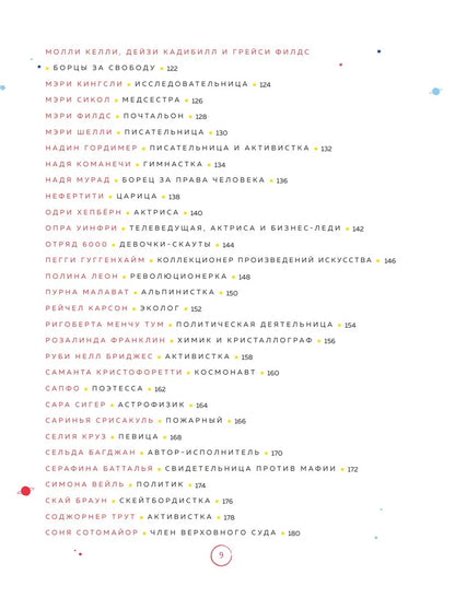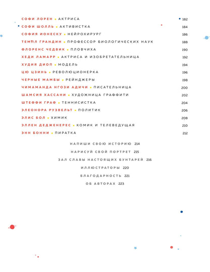 «Коротенькие рассказы, проливающие свет на жизнь необыкновенных женщин, преодолевших трудности и перешагнувших через предубеждения, рассказанные просто и вдохновляюще — но без нравоучительности и навязчивости. Эта книга помогла мне обсудить сложные вопросы брака, половой идентификации и личностного восприятия с моими детьми. Единственное, что я бы поменял — убрал бы союз "для" из названия, потому что эта книга о девочках-бунтарках, но не только для девочек, и для мальчиков, и для родителей тоже». — Booktime on amazon.com