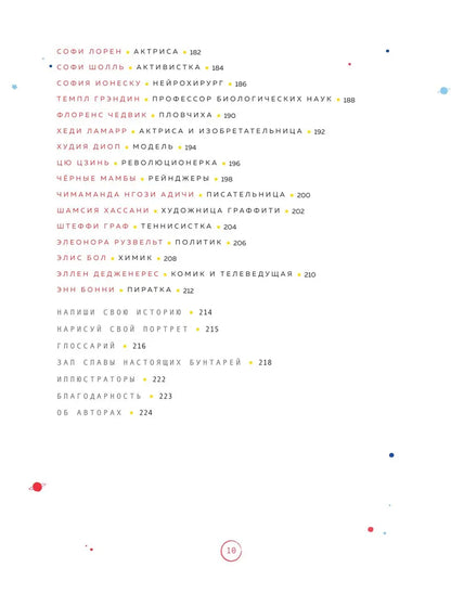 Перед вами — огромный источник жизненных сил и вдохновения. Множество сказок, написанных на основе реальных историй о смелых и необыкновенных женщинах-новаторах (Коко Шанель, Екатерина Великая, Клеопатра, Анна Политковская, Фрида Кало), сумевших выйти за рамки и справиться с невзгодами собственными силами, не оставят равнодушными юных бунтарок-мечтательниц и их мам!